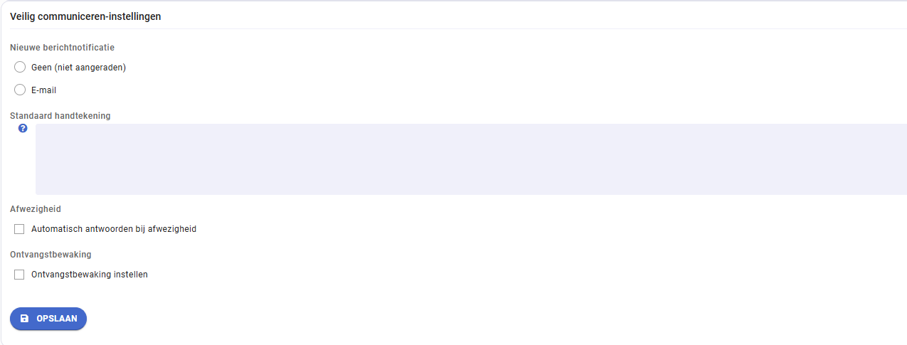 Via deze pagina kun je ook je standaard handtekening voor Veilig communiceren instellen.