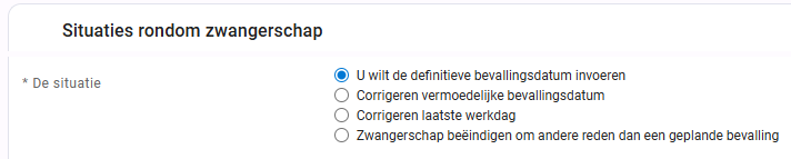 Deze optie kan je gebruiken wanneer de einddatum van het bevallingsverlof om een bepaalde reden anders is dan in de standaard situatie.