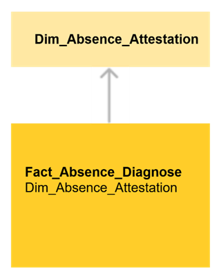 Het feitenbestand Fact_Absence_Diagnose geeft inzicht in de diagnoses ingevuld op het attest. Deze feitentabel is verbonden met de tabel Dim_Absence_Attestation, waarin de attesten en bijbehorende details worden opgeslagen.