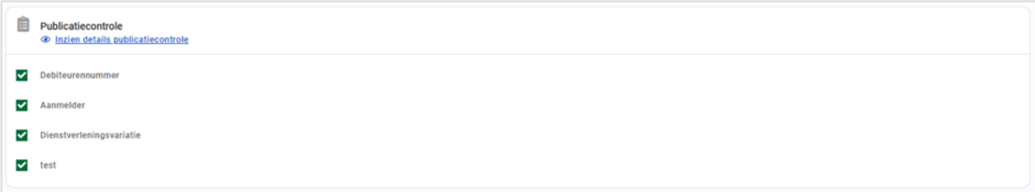 Een dienstverleningsovereenkomst kan alleen worden gepubliceerd wanneer alle vereiste informatie is ingevuld. Eventueel ontbrekende gegevens worden weergegeven in het blok ‘Publicatiecontrole’. Voor een overzicht en het aanvullen van de ontbrekende informatie klik je op ‘Inzien details publicatiecontrole’.