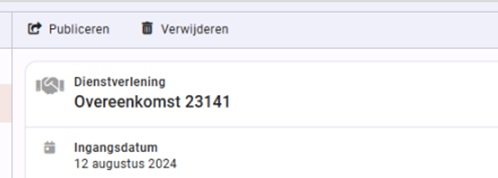 Zodra alle benodigde informatie is ingevuld, kan de overeenkomst worden gepubliceerd. Bij publicatie worden automatisch de contracten aangemaakt voor de gekoppelde dienstverleningsvariaties.