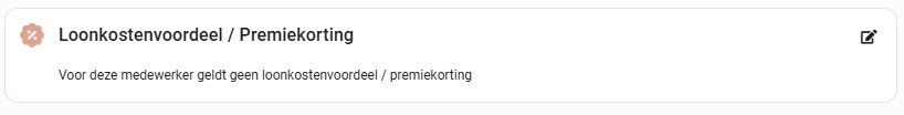 Indien is vastgesteld dat voor deze werknemer recht bestaat voor een LKV, dan kan deze bij de werknemer worden vastgelegd in het werknemer dossier > 'Overzicht' > ‘Loongkostenvoordeel/Premiekorting’.