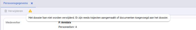 - Klik op verwijderen. Nadat het dossier is verwijderd is het niet meer beschikbaar. Deze actie kan alleen verricht worden om foutieve opvoer te corrigeren.